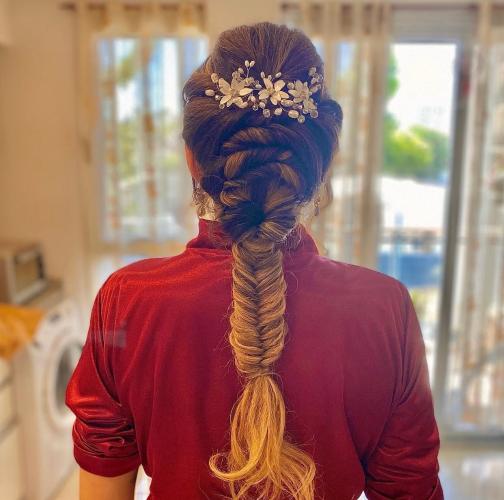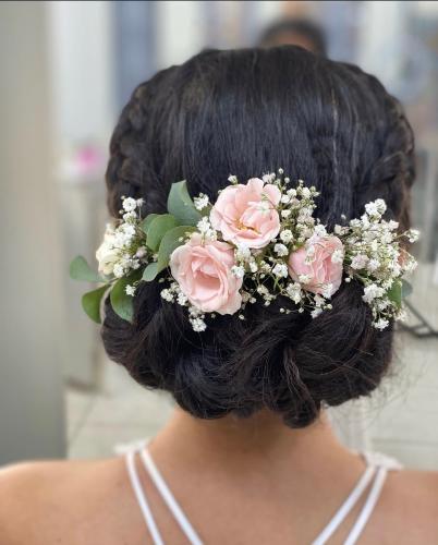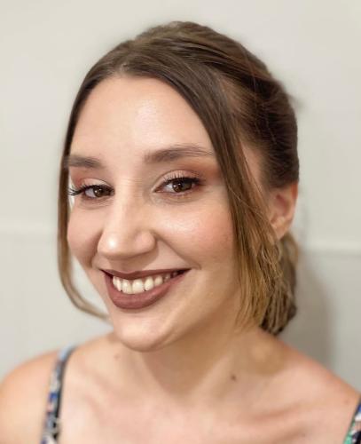 O penteado é a maquiagem que a Bruna fez em mim ficaram perfeitos. Ela entendeu exatamente o que eu queria, algo chique, mas sem exageros. Além disso, ela resolveu o problema que tenho da pele...