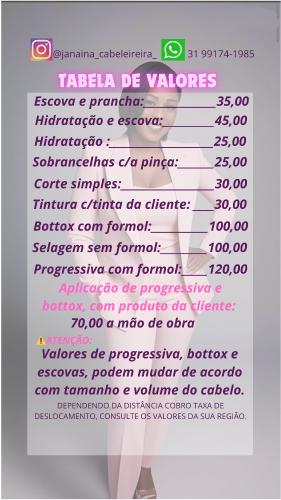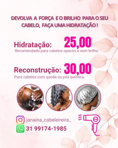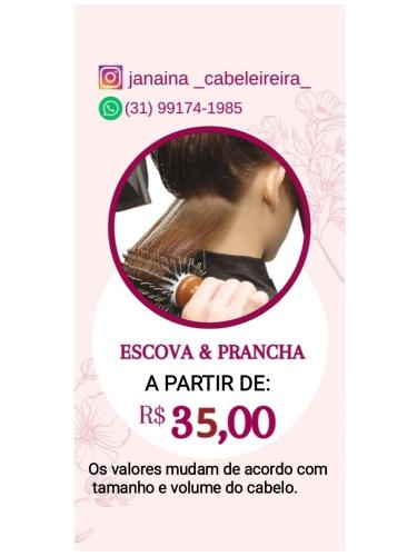 Boa tarde. Meu nome é danielle. Estou em busca de uma profissional para escovar semanalmente o meu cabelo, e, periodicamente, aplicar henna, relaxamento e corte das pontas. Deixo o meu número de whatsapp para uma cotação: (31) . Antecipadamente, agradeço a atenção. Danielle.