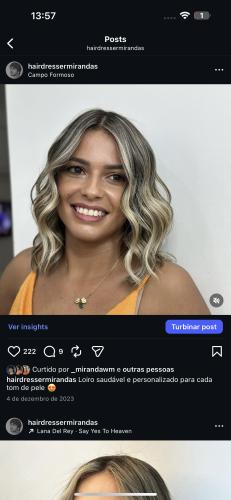 Gostaria de um orçamento para a manutenção das minhas luzes. Meu cabelo natural é cacheado (2c - 3a) mas raramente uso ele assim, mantenho alisado na escova. O tamanho está um pouco acima dos ombros. Faço luzes a cerca de 5 anos!