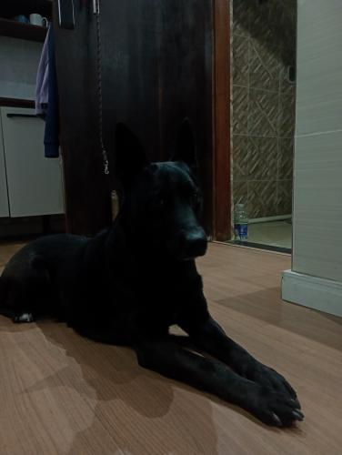 Ele é um filhote de 4 meses hoje, brincalhão, só come ração 2x ao dia. Precisa andar/passear 1x ao dia. Convive com mais um cão srd em. Casa super bem, convive com criança. Já está vacinado e vermifugado. Preciso de alguém que dê as 2 refeições e lave o quintal onde ele fica.