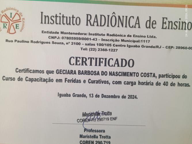 Excelente trabalho tudo que o paciente necessita ela faz com profissionalismo e cuidado bem estar do paciente.