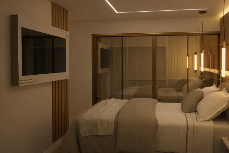 O quarto já ´possui um armário planejado no local na cor branco, com duas portas de correr. O quarto deverá ser adequado a uma adolescente que completará nos próximos dias 16 anos. A personalidade dela gira em torno de romantismo, pessoa fashion, e comunicativa. No quarto devera ter itens básicos como: cama de casal (pequena), mesa de estudos, papel de parede com rosas vermelhas, um criado...