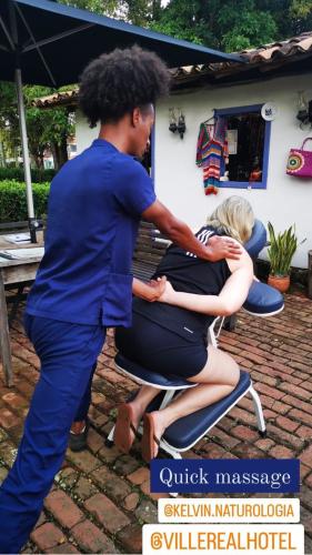Massagem em duas pessoas, de preferencia ao mesmo tempo se tiver mais de um profissional