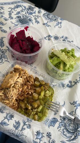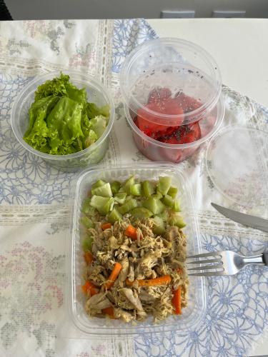 Busco melhorar minha composição corporal (mais massa magra com menos gordura), Pratico musculação regularmente, peso meus alimentos na balança e conto calorias, costumo comer as mesmas coisas todos os dias, variando um pouco no final de semana, não gosto de receitas complicadas nem que demorem muito para cozinhar, prefiro praticidade na alimentação.