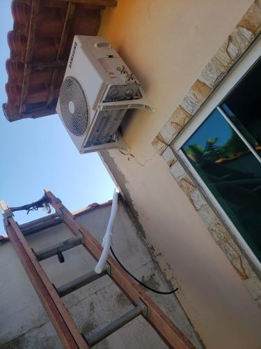 Ar condicionado split para ser instalado primeira vez nessa casa. Tem corrente elétrica compatível, local livre para colocação do dreno.