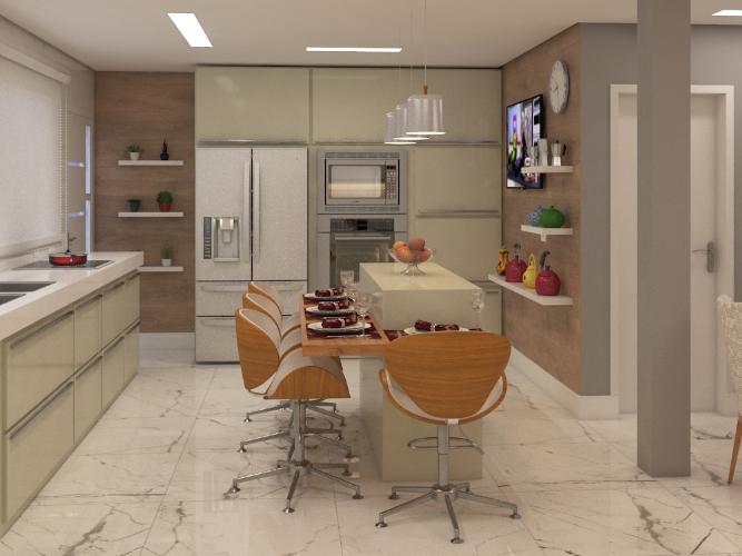 Gesso no teto, com luminárias cores quentes e frias. Design de uma pia em marmore cujo mesmo espaço também teria uma máquina de lavar e que seca. Com alguns móveis planejados. Lembrando que ainda nao consegui o apartamento. Eu apenas estou levantando informações para ter a base de quanto devo arrecadar para que tal projeto seja realizado de tal forma que seja bom para ambos. Ainda nao...