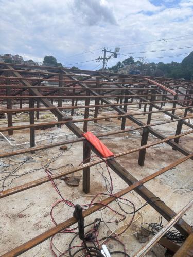 *objeto da obra:* ====================== 1). Converter o "telhado fêmea" em "telhado macho"; 2). Manter a distância da altura da "tampa da cx d' água" até o "ápice do telhado" em *1,70 m.*; 3). Reestruturar os beirais do telhado; 4). Fazer plataforma no 3°andar do prédio, e uma nova escada embutida à construção, com um novo alçapão na área comum, para acesso ao telhado e a caixa...