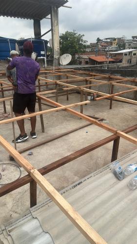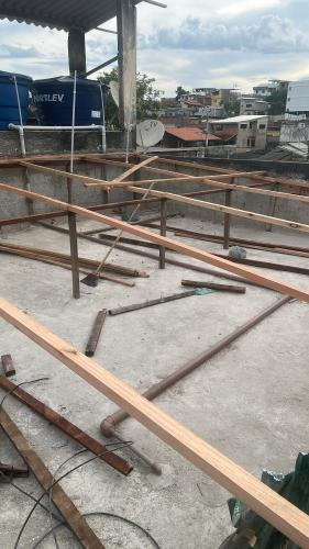Aumento de3 carreiras de tijolo do muro nos fundos da casa, (muro tem mais ou menos 8m de extensão). Refazer o telhado de amianto da varanda de traz da casa. Mais ou menos 3 metros de extensão. Abertura de uma porta de um cômodo para outro dentro da própria casa. Material já comprado.