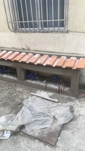 Contratei um pedreiro e não apareceu mais e deixou diversas coisas pendentes. Preciso consertar a parte externa do quintal, com reboco e chapisco. No local onde colocou o chuveirão, colocar a fileira de azuleijos. Fora que tem uma caixa d agua que está condenada e caindo. De repente teremos que quebrar e tirar.