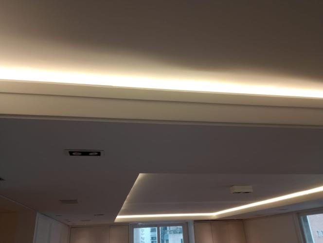 - Instalação de um teto falso com furos para os pontos de luz para os halogênios.