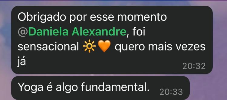 Boa tarde, pelo que entendi vc atende no jardim coopagro, moro em frente a fiasul e gostaria de saber se eu e minha esposa poderíamos fazer uma aula experimental? On line ou presencial, na verdade gostariamos de conversar e entender como funicona, pois somos leigo em relação a esse assunto, estou estudando um pouco sobre psicologia positiva e la diz que fazer yoga duas vezes por semana é muito...